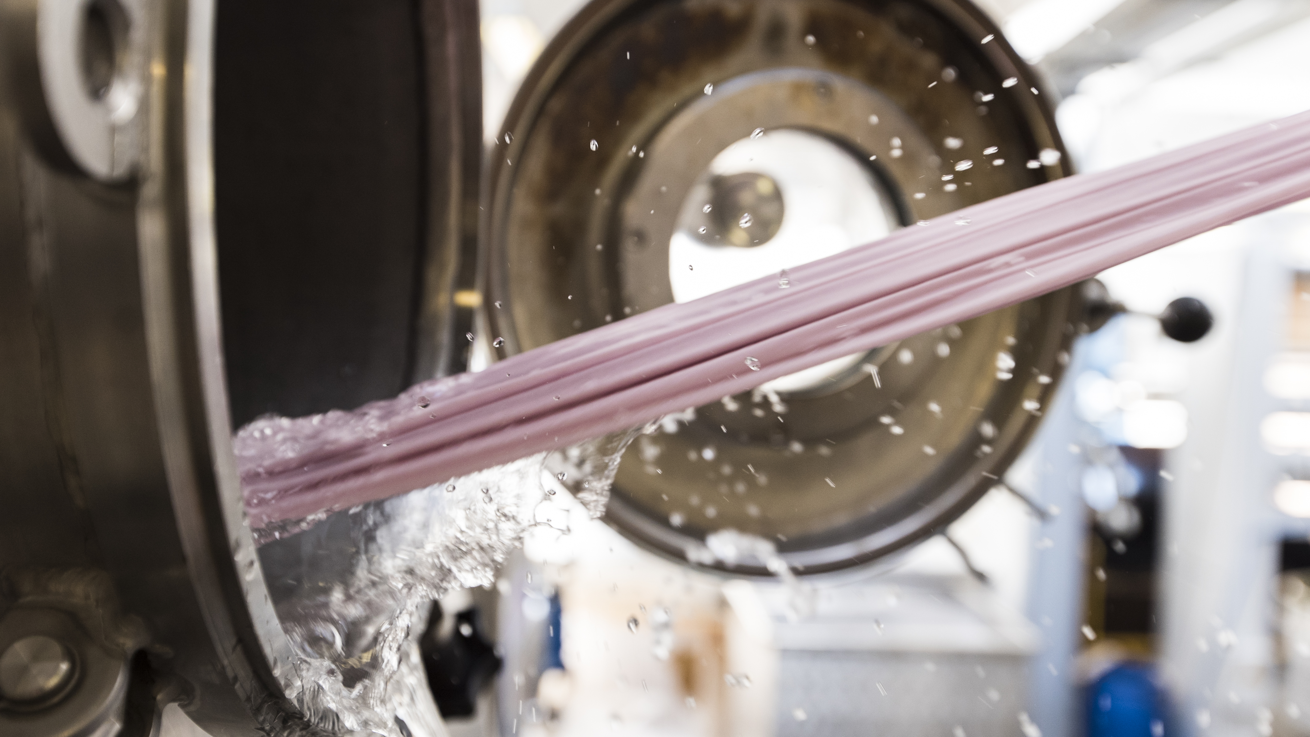 Aufgabe der Textilveredler ist es, aus dem Gestrick den gebrauchsfertigen Stoff zu machen. Wie aufwendig dieser Prozess ist, hängt ab vom gewünschten Endprodukt, von den Zutaten und der bisherigen Bearbeitung: Jeder Artikel durchläuft einen Musterprozess, der bis zu 15 Prozessschritte umfassen kann – und am Ende genau das gewünschte Endprodukt abbildet.